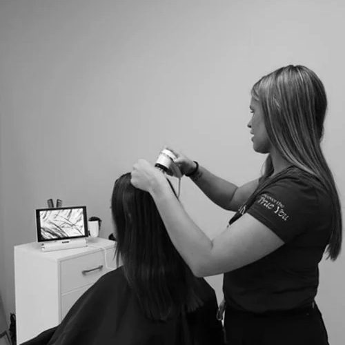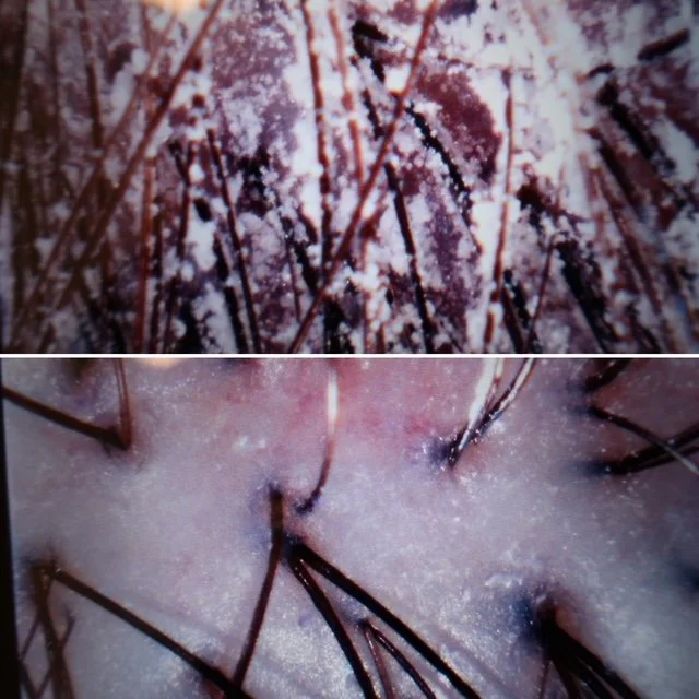A microscopic scalp analysis gives a close-up view of your scalp and hair follicles, revealing hidden issues like buildup, dryness, thinning patterns, or inflammation that can’t be seen with the naked eye. This allows for a truly personalized treatment plan, targeting the root cause for healthier hair growth, improved scalp health, and longer-lasting results.