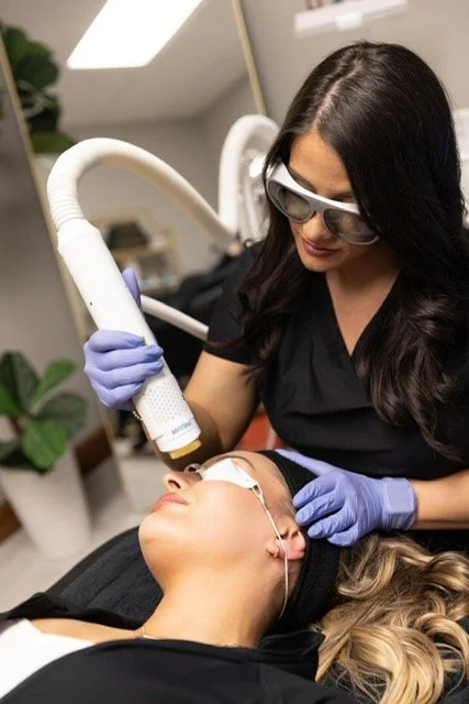 With sun exposure and a decrease in collagen with the natural aging process our skin can look dull, older than our biological age with wrinkles and areas of hyperpigmentation. Targeted areas for skin rejuvenation often include fce, neck and declotte, but any area of your body could benefit from this laser induced rejuvenaton.